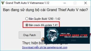 Bước #8: Tiến hành chạy File Grand Thief Auto V Vietnamese 1.12. Chọn xuống tùy chọn dưới như trong hình và nhấn chạy Patch nhé.
